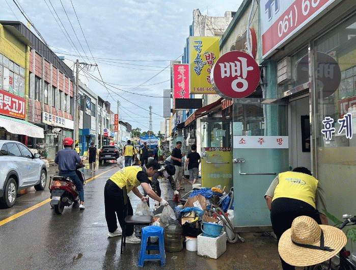 특히 오후 2시부터 3시 사이 시간당 94.5mm의 집중호우가 발생하면서 배수 용량을 초과해 율촌면 조화리 일원 상가 약 30동이 침수됐다.