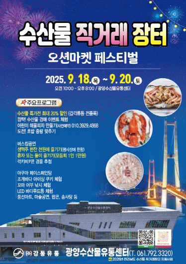 이번 직거래장터는 전라남도 수산물 직거래장터 지원사업의 일환으로, 사업 대상자로 선정된 광양 수산물 도매시장의 시장도매인 (주)강동유통이 주관한다.
