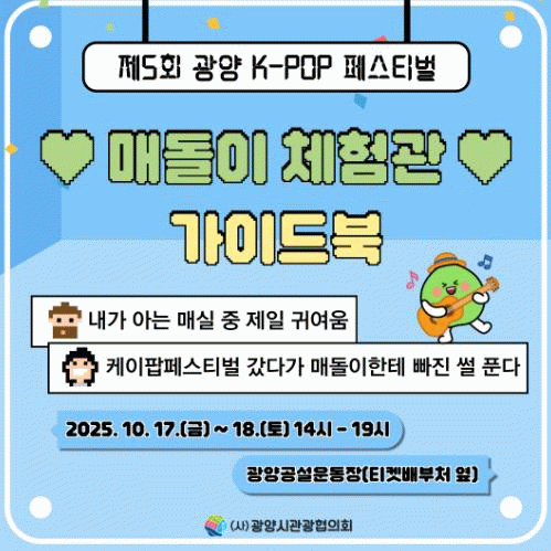이어 “특히 AR 기술과 미디어 체험이 결합된 ‘매돌이 체험관’과 기대평 이벤트는 축제의 사전 분위기를 높이고, 참여형 K-POP 축제의 새로운 모델을 제시하기 위해 기획됐다”며 “많은 시민과 관광객이 적극적으로 참여해 광양의 매력을 체험하고 함께 만들어가는 축제의 열기를 느껴보길 바란다”고 덧붙였다.