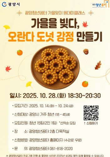 프로그램은 10월 28일 오후 6시 30분, 광양청년꿈터(광양시 오류5길 8)에서 무료로 진행된다.