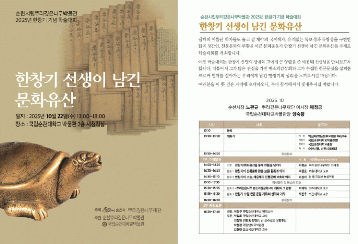 이번 학술대회는 한창기 선생에 관심이 있는 순천시민 누구나 참여할 수 있으며 자세한 사항은 순천시립뿌리깊은나무박물관으로 문의하면 된다.