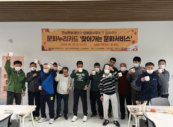 신안군은 지리적 여건상 도심지역에 비해 가맹점 및 문화생활 인프라가 부족한 데다 대부분 고령의 대상자들로 발급률에 비해 이용률이 현저히 낮은 상황이어서 압해읍이 전남문화재단의 기획 사업인 도서·산간지역 ‘찾아가는 문화체험’행사를 연계하여 문화누리지원사업 홍보 및 문화누리카드 이용률 향상을 위해 개최했다.