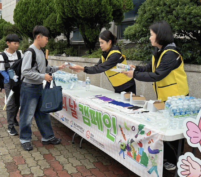 영광군 어린이급식관리지원센터 홍보와 ‘Let’s 마이(-)나(NA)슈(SUGAR)!(나트륨 당류 줄이기, 물 많이 마시기)’라는 주제로 초중학생, 직장인 등을 대상으로 생수, 리플렛 및 홍보물품을 배부했다.