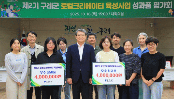김순호 구례군수는 “이번 사업을 통해 로컬크리에이터들이 구례의 자원을 창의적으로 재해석하고, 지역의 매력을 담은 제품을 선보였다”며, “앞으로도 지역 창작자들이 구례 경제의 새로운 활력으로 성장할 수 있도록 지속적인 지원을 아끼지 않겠다”고 말했다.