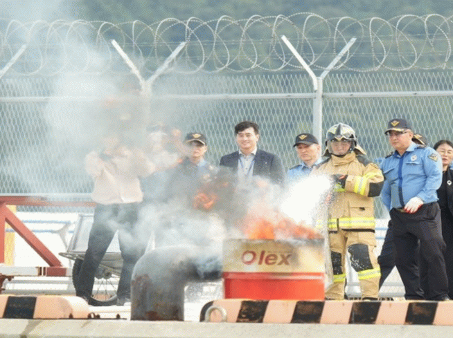 특히, FRP를 활용한 모의 화재 상황을 부여하고, 실제 해상 조건과 유사한 환경에서 ‘폼 소화장비’를 운용해 화재 진압 효과를 검증했다.