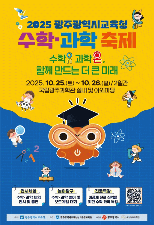 광주광역시교육청창의융합교육원은 오는 25~26일 오전 9시30분부터 오후 4시까지 국립광주과학관에서 ‘2025 광주 수학·과학 축제’를 개최한다.