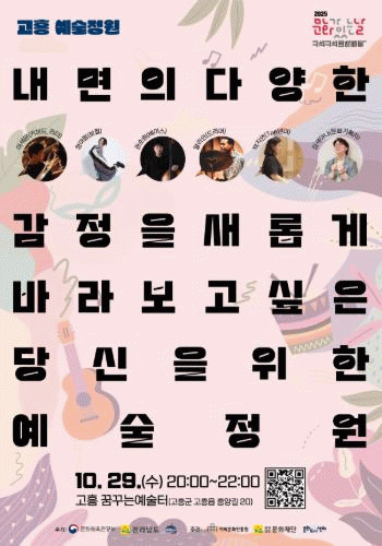 이번 ‘고흥예술정원’은 이세운 밴드와 김새아나 문화기획자가 함께하며, ‘내면의 다양한 감정을 새롭게 바라보고 싶은 당신을 위한 예술정원’을 주제로 감정 키워드를 활용한 재즈 즉흥 연주 워크숍이 진행될 예정이다.