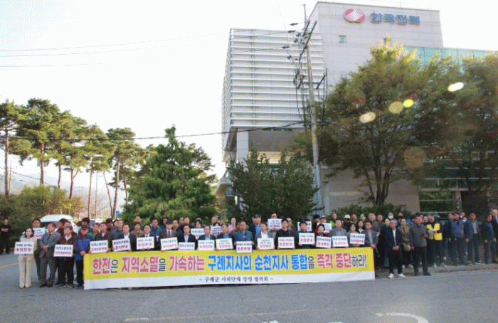 김영민 사회단체상생협의회 위원장은 ‘기존에 구례군에 있던 여러 기관들이 조직 효율화와 서비스 개선 등을 약속하며 통합한 사례가 있지만 결국에는 군민들의 불편만 초래했다.’며 ‘공공기관을 유치하여 지역소멸을 막고자 온 군민이 노력하고 있는 현 상황에서 한국전력공사의 지사 통합정책은 전력 수요자의 요구를 외면하고, 재정 악화를 초래한 운영상의 과실을 소도시 지역민에게 전가하는 행태’라며 지역 내 160개 사회단체가 연대하여 문제에 대응해 나갈 것을 당부했다.