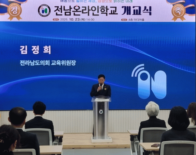 이날 김정희 위원장은 축사를 통해 “전남온라인학교는 단순한 온라인 학습공간이 아니라, 전남의 고등학생들이 시공간의 제약 없이 동일한 교육 기회를 누릴 수 있도록 만든 혁신의 결실”이라며 “이는 교육의 지역적 한계를 넘어 진정한 ‘배움의 평등’을 실천하는 전남교육의 새로운 도전”이라고 말했다.