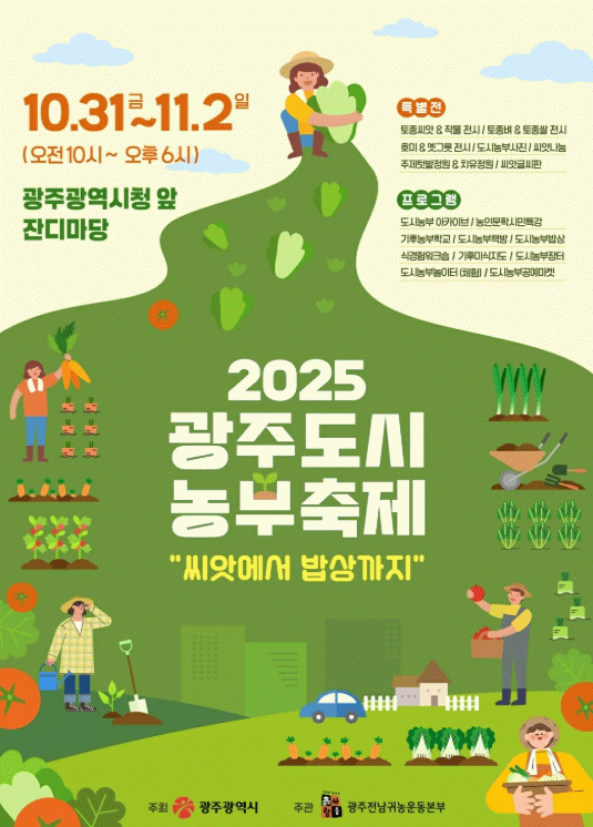 한편, 이번 도시농부축제는 ‘제32회 광주김치축제(우주최광(光) 김치파티)’와 동시 개최돼 다채로운 즐길거리로 시민들을 맞이할 예정이다.