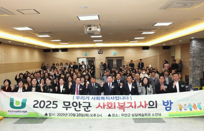 행사에 참석한 김산 군수는 격려사를 통해 “사회복지사들의 끊임없는 헌신과 희생 덕분에 무안이 더 따뜻하고 아름다운 곳이 되어 가고 있다”며, “애써주시는 사회복지사들의 노고에 존경을 표하며, 처우개선은 물론 사회복지 전문가로서 자긍심을 가질 수 있도록 적극 지원하겠다”고 밝혔다.