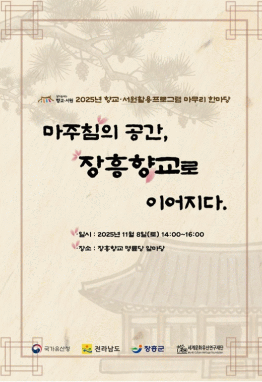 이번 행사는 장흥향교(전교 위승복)와 세계문화유산연구재단(원장 이범기)이 주최·주관하며, 국가유산청·전라남도·장흥군이 후원한다.