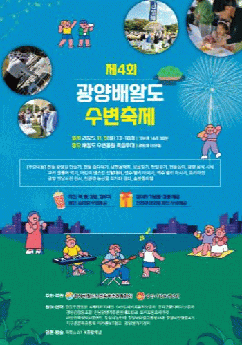 한편, 오는 11월 9일 오후 1시, 배알도 수변공원 특설무대에서는 광양 전통 김 만들기, 보물찾기, 용지큰줄다리기 등 다채로운 체험이 펼쳐지는 ‘제4회 광양 배알도 수변축제’가 열린다.
