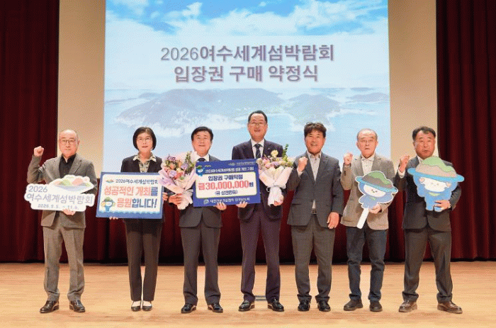 이날 (사)대한전문건설협회 전라남도회는 총 3천만 원 상당의 섬박람회 입장권 사전 구매를 약정하며 2026여수세계섬박람회의 성공개최를 기원했다.