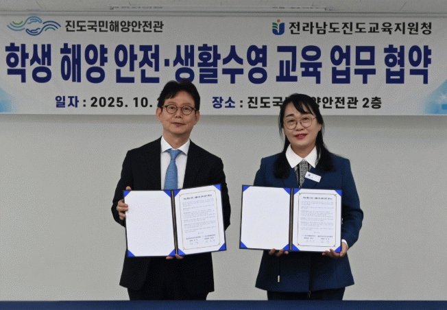 김미 전라남도진도교육지원청 교육장은 “학생의 안전은 학교 교육의 기본이며, 해양안전과 생존수영 교육은 필수 역량”이라며 “이번 협약이 학생들에게 안전한 체험 기회 확대로 이어져 미래 역량을 키우는 중요한 발판이 되길 기대한다”고 강조했다.