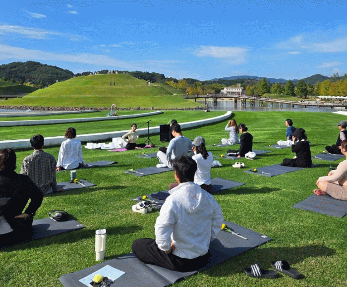 특히 호수정원에서 펼쳐진 선셋요가는 봉화언덕의 노을이 물 위에 비치는 시간에 맞춰 진행돼, “어디에서도 경험할 수 없는 치유의 순간”이라는 반응이 이어졌다.