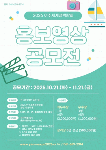 참가 희망자는 2026여수세계섬박람회 누리집에서 신청 서류를 내려받아 공모 기간 내 이메일로 제출하면 된다.