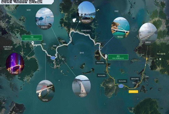 이 중 개통된 백야도~팔영대교 6개 해상교량 23㎞ 구간이 관광도로로 지정됐으며 현재 공사 중인 화태~백야 구간 4개 교량과 화태대교는 준공 후 추가 지정을 신청할 계획이다.