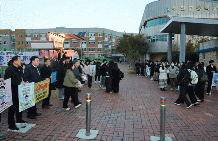 새벽부터 기온이 크게 떨어졌지만, 군은 이른 아침부터 고사장 입구를 지키며 환한 미소와 “고생 많았다”, “너희의 노력은 빛날 것”이라는 응원의 구호로 포근한 분위기 속에 수험생들을 맞이했다.