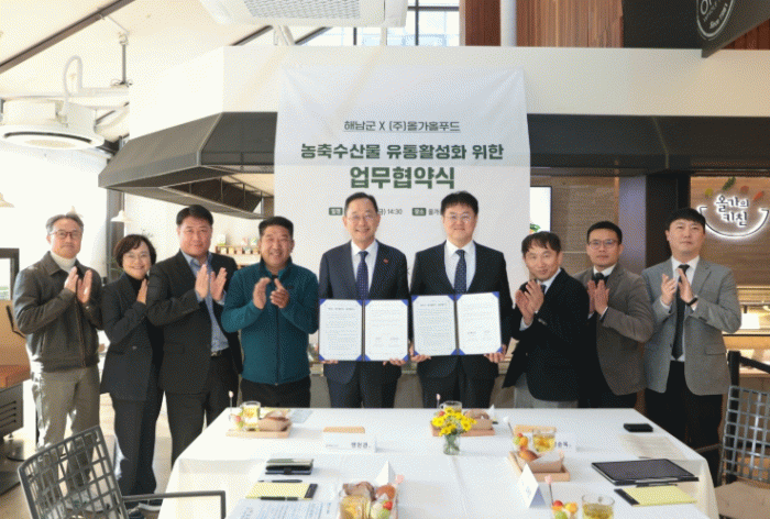 명현관 해남군수는 “이번 업무협약은 농어촌수도 해남의 맛있고 건강한 먹거리가 대한민국을 넘어 세계 시장으로 진출하는 중요한 출발점”이라며“앞으로도 지역 농산물의 경쟁력 강화와 판로 확대를 위해 다양한 협력을 이어가겠다”고 밝혔다.
