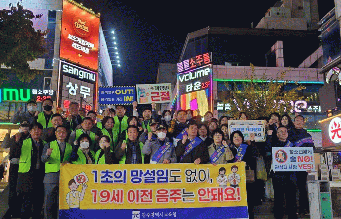 참여자들은 상무지구 일대 음식점과 유흥업소 등을 대상으로 ‘주류 판매 NO! 청소년 보호 ON!’ 구호를 외치고, 홍보물 배부, 업무 대상 청소년 보호법 안내, 청소년 음주·흡연 예방 안내문 및 스티커 부착 등도 진행했다.