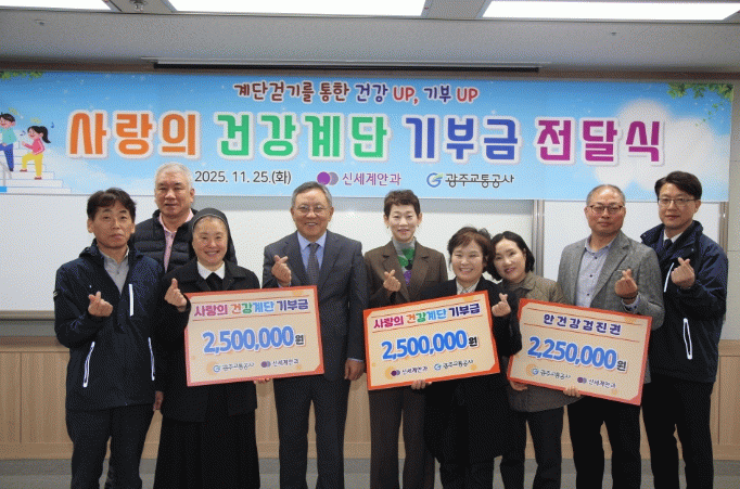 신세계안과의 후원으로 운영되는 ‘사랑의 건강계단’은 상무역 4번 출구에 조성 돼 있으며, 시민이 계단을 1회 이용할 때마다 10원이 적립된다.