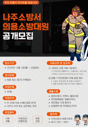 나주소방서 신향식 서장은 “의용소방대는 지역 안전의 최전선에서 다양한 역할을 수행하는 중요한 조직”이라며 “지역사회 안전에 기여하고자 하는 시민들의 많은 관심과 참여를 바란다”고 말했다.