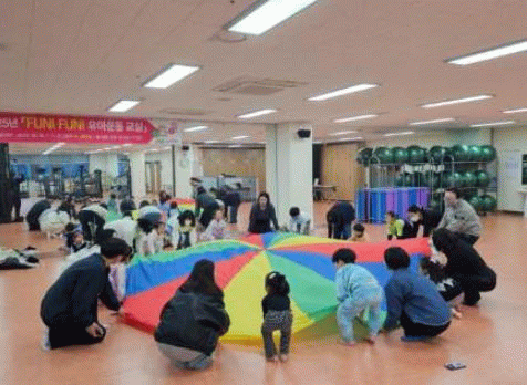 수업은 유아 체육 전문 강사 지도 아래, 준비운동–주제별 활동–균형놀이–정리 스트레칭 순으로 진행됐으며, 빌리보, 파라수트, 공놀이 세트 등 다양한 교구를 활용한 테마 운동으로 구성해 아이들의 흥미와 참여도를 높였다.