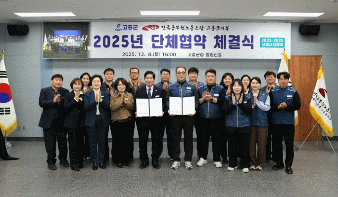 송정기 지부장은 “이번 단체협약은 조합원들의 목소리를 바탕으로 노사가 충분한 소통 끝에 도출한 결과로, 현장의 근무여건 개선과 직원 복지 향상에 실질적인 도움이 될 것으로 기대한다”며 “앞으로도 고흥군과의 협력을 통해 안정적인 노사관계와 건강한 공직문화를 만들어 나가겠다”고 전했다.