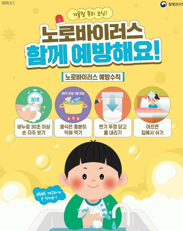 최근 4주간 질병관리청에서 운영하는 병원급 장관감염증 표본감시결과, 노로바이러스 감염증 발생 증가 추세이며 작년 같은 기간 대비 58.8% 증가한 양상이다. 특히, 전체 환자 중 0~6세 영유아 비중이 29.9%를 보였다고 밝혔다.