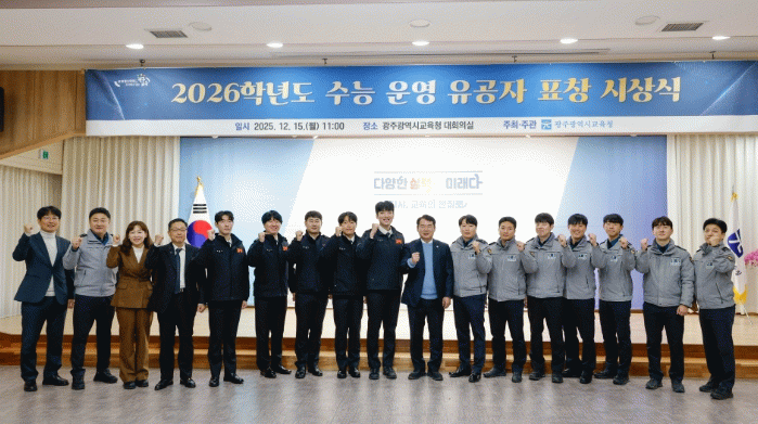 이정선 교육감은 이날 시상식에서 수능 운영 유공 경찰관 6명, 구급대원 6명 등 12명에게 표창을 수여하고, 광주광역시 모범운전자회에 감사패를 전달했다.