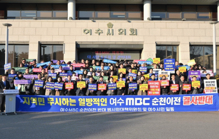 15일 여수시에 따르면, 이날 오후 3시 여수시와 여수시의회, 시민사회단체로 구성된 ‘여수MBC 순천이전 반대 범시민대책위원회’는 시의회 청사 1층 공감뜨락에서 ‘여수MBC 지키기! 대시민 토론회 및 결의대회’를 가졌다.