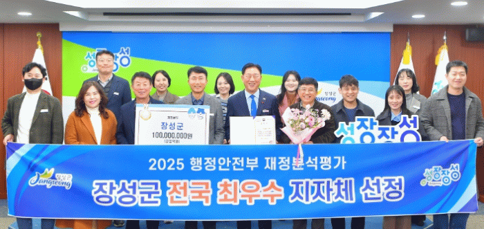 재정분석 결과 종합점수 최고등급인 ‘가’등급을 획득한 장성군은 행정안전부 장관 표창과 함께 특별교부세 1억 원을 받았다.