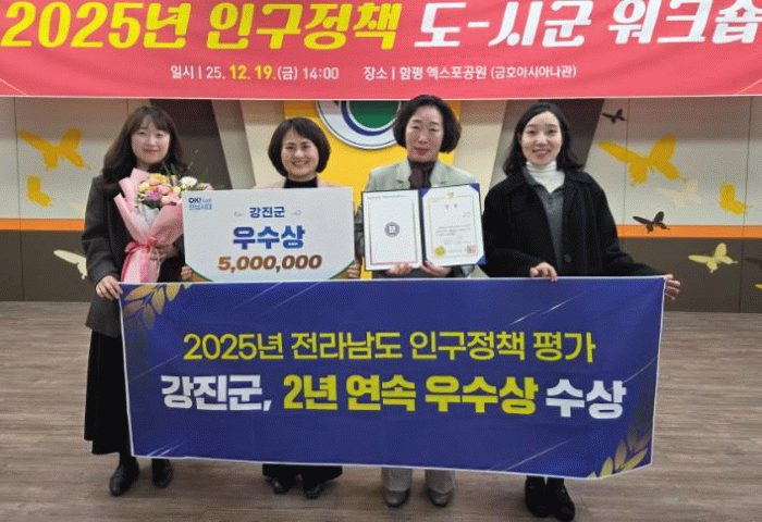 이번 수상은 인구감소 대응과 지역경제 회복이라는 두 과제를 동시에 해결한 대표적 사례로, 강진군이 제시한 새로운 인구정책 모델의 가능성이 높게 평가된 결과이다.