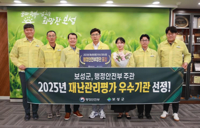 보성군은 행정안전부 주관 2025년 재난관리평가, 전라남도 주관 을지연습, 제7회 다산안전대상 등 주요 재난‧안전 분야 평가에서 연이어 우수기관으로 선정되며 재난안전관리·비상대비 주요 분야에서 우수 성과를 달성했다.