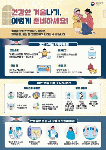 고령자와 만성질환자는 겨울철 추위에 취약한 만큼 기온이 낮은 날에는 무리한 외출을 피하고 체온 유지에 각별히 신경써야 한다.