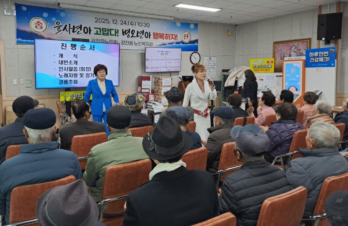 이번 행사는 강진읍 마을 경로당회장 45명과 노인복지관 어르신 100여명이 참석한 가운데 행복예술단의 식전공연과 노래자랑, 경품 추첨. 오찬 순으로 진행됐다.