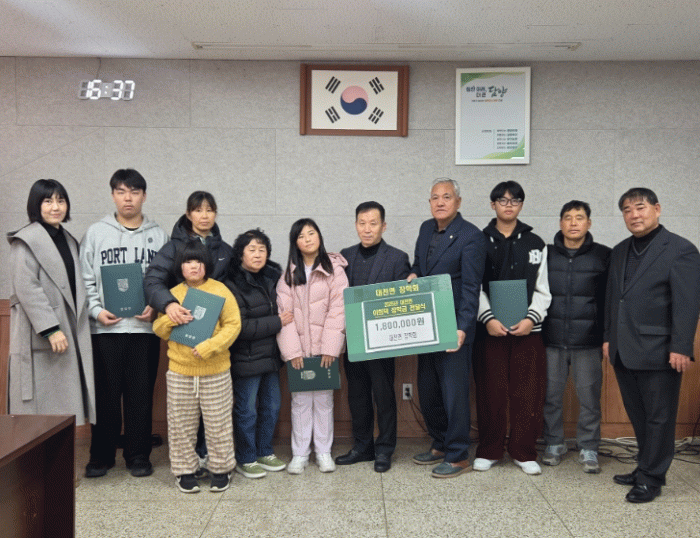 이번 전달식에서는 어려운 여건 속에서도 바른 인성을 바탕으로 꿈을 향한 도전 정신을 가지고 학업에 매진하고 있는 학생을 대상으로, 초등학생 2명에게 각 30만 원, 중학생 3명에게 각 40만 원씩 총 180만 원이 지급됐다.