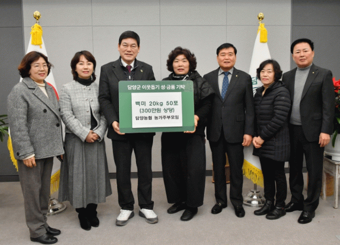 담양농협 농가주부모임(회장 신부자)에서는 20kg 백미 50포(300만 원 상당)를, 담양농협 부녀회(회장 김현숙)에서는 20kg 백미 20포(120만 원 상당)를 전달하며 지역사회에 온기를 불어넣었다.