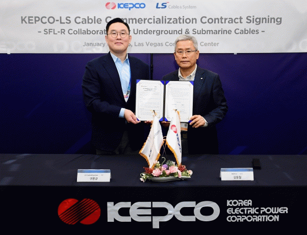 한전은 1월 6일(화) CES 2026 행사가 개최되는 미국 라스베가스에서 한전의 지중·해저케이블 상태판정 기술 SFL-R(Smart Fault Locator-Real Time, 실시간 탐지 기술)의 사업화 협력과 글로벌 시장 공동 진출을 위해 LS전선과 계약을 체결했다. 체결식에는 한전 김동철 사장과 LS전선 구본규 사장 등 양사 경영진이 참석했다.