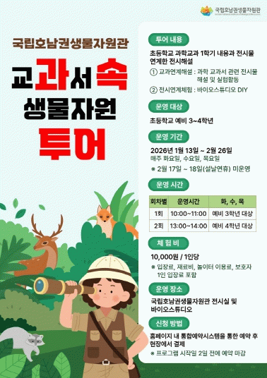 ‘과속투어’ 프로그램은 매주 화요일부터 목요일까지 운영되며 예비 3학년 대상은 오전 10시, 예비 4학년 대상은 오후 1시에 운영될 예정이다. 사전 예약 프로그램으로 자원관 누리집 상단 통합예약시스템을 통해 회차별로 신청할 수 있다.