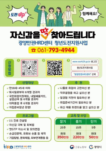 참여를 희망하는 청년은 고용24 누리집에서 신청할 수 있으며, 자세한 사항은 광양만권HRD센터로 문의하면 안내받을 수 있다.