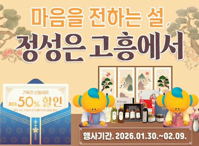 이번 기획전은 설 명절을 앞두고 감사와 정성을 전할 수 있는 고흥 대표 농수특산물 선물세트를 중심으로 구성됐으며, 최대 50% 할인 혜택을 제공해 합리적인 가격으로 명절 선물을 준비할 수 있도록 기획됐다.