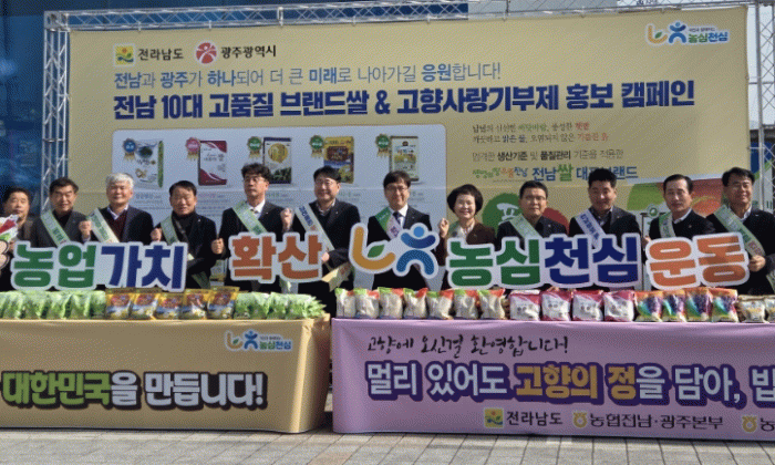 이날 행사에서는 전남-광주 상생을 기념해 해남 땅끝햇살, 장흥 아르미쌀 등 전남 10대 고품질 브랜드 쌀과 전남농협 광역브랜드인 풍광수토, 광주의 빛찬들햇쌀 등의 시식미와 가래떡을 귀성·귀경객에게 나눠줬다.