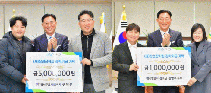 (재)장성장학회에 따르면 농업회사법인 ㈜장성주조 구정운 대표이사가 장학금 500만 원을 장학회에 기부했다.