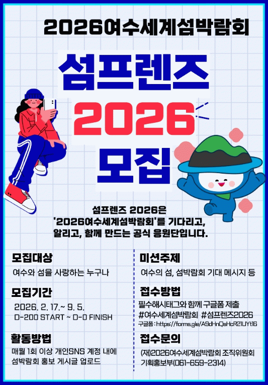 섬프렌즈는 2026여수세계섬박람회에 관심이 있는 국내·외 누구나 참여할 수 있으며, 개인 SNS를 통해 섬박람회의 가치와 소식을 알린다.