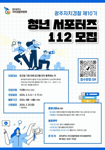 ‘청년 서포터즈 112’는 광주자치경찰위원회가 2021년 전국 최초로 도입한 청년 참여 프로그램으로, 청년들이 사회관계망서비스(SNS)를 활용해 자치경찰의 주요 시책과 정책을 홍보하고, 시민과의 소통창구 역할을 수행한다.