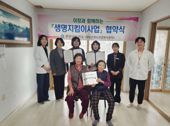 이날 무안군정신건강복지센터와 평월마을은 ▲생명지킴이마을 조성을 위한 협력 ▲자살 고위험군 조기 발견 및 전문기관 연계 ▲생명지킴이 홍보 활동 지원 등에 대해 뜻을 모았다. 아울러 평월마을 이장을 ‘생명지킴이’로 위촉해 정서적 어려움을 겪는 주민을 살피는 역할을 맡겼다.