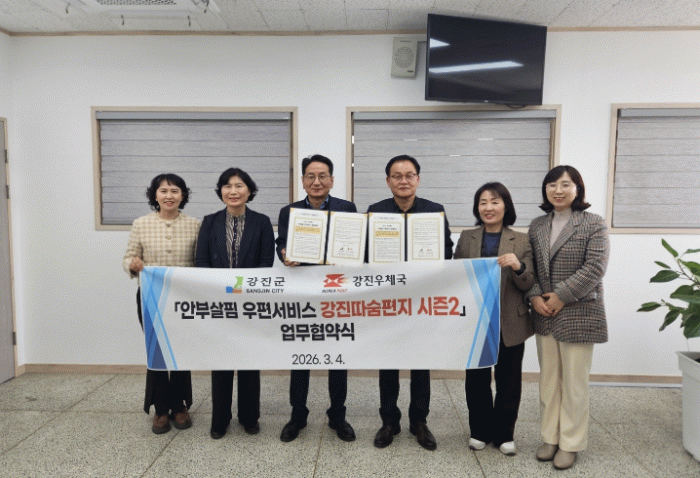 한편 강진군은 2025년 ‘강진군 안부살핌 우편서비스’사업을 25년 4월부터 12월까지 추진한 결과, 집배원이 총 70명의 대상자에게 920회를 직접 대면배달 및 안부확인 등 맞춤식 서비스를 지원하여 대상자들로 하여금 높은 만족감을 보였고, 고독사 예방에도 큰 효과를 나타냈다.