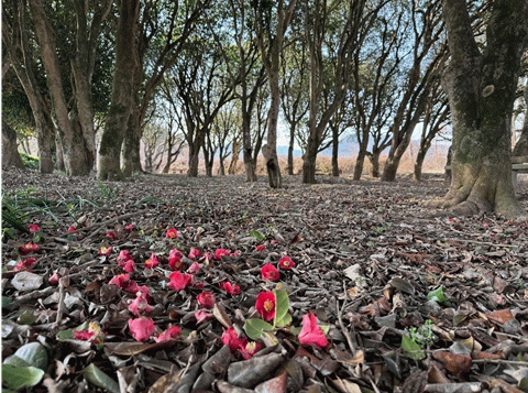 2천㎡ 넓이의 숲에는 140여 그루의 동백나무가 빽빽이 들어서 있다.